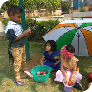 We, while making early literacy a joy for children, simultaneously teach them vocabulary and language (with phonological awareness) amongst other things. The fun learning techniques – like singing, reading aloud, storytelling (& retelling) and meaningful play acting, all paves the way for sound academic absorption and enjoyment in the later years.